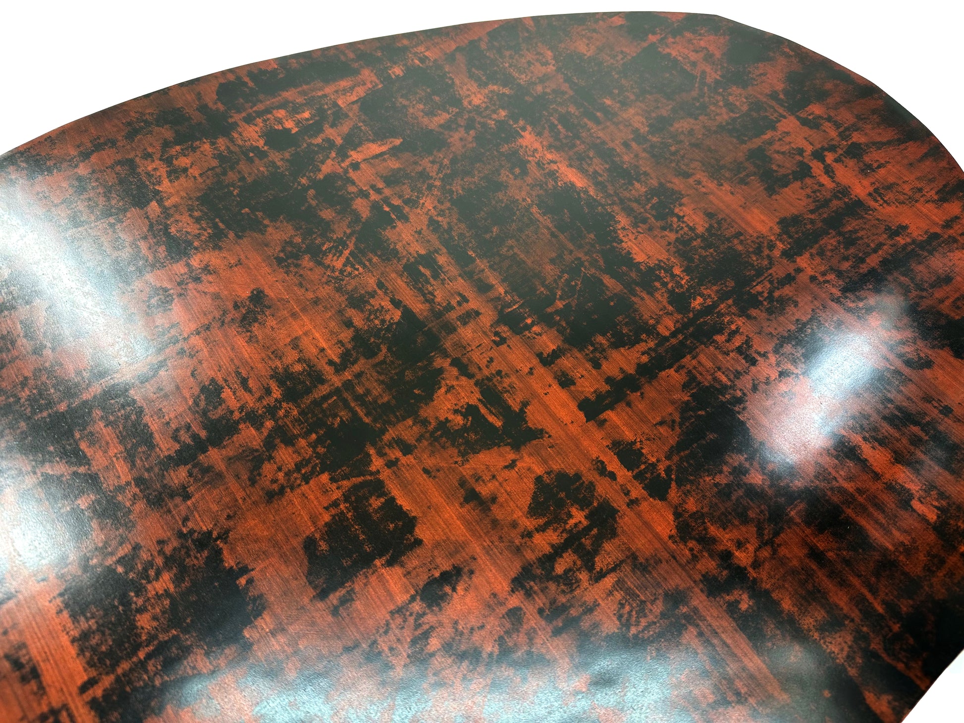 The process used to wipe off the black paint varies greatly from piece to piece, so no two pieces are exactly alike.