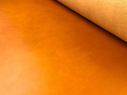 厚口の原皮をピット槽でじっくりとタンニン鞣ししたフルタンニン鞣しレザー。